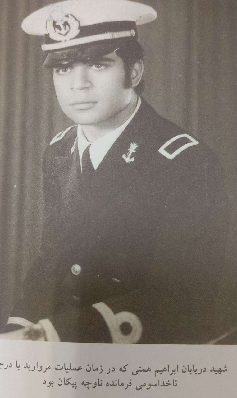 شهید دریابان ابراهیم همتی که در زمان عملیات فرمانده ناوچه پیکان بود.
